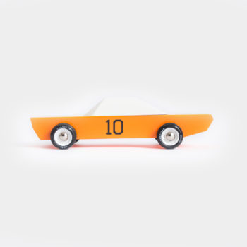 Named after legendary –and imaginary- wood toy race car driver, this two-tone racer will fight tooth and nail at every hairpin turn. The imaginary huge engine requires a large hood air intake. Made from Solid Beech Wood, water based paint and clear urethane coat. White ABS plastic rims, with Food grade rubber tires.