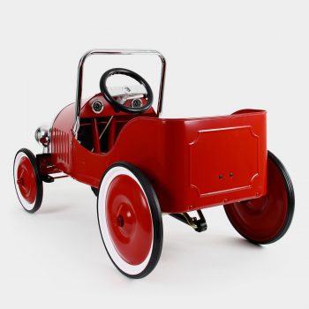 The stop-sign-red vintage Legend Roadster is ready and waiting for your backyard Grand Prix. Pedal power will see your little racer zipping around with ease and agility. This pedal car features beautiful racing decal including checkered flags and 1928 Monaco race car numbering, wide wheels, beautiful chrome detailing and a red padded seat.